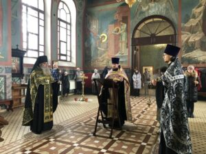 По окончании богослужения был отслужен молебен с каноном святому великомученику Феодору Тирону с освящением колива.