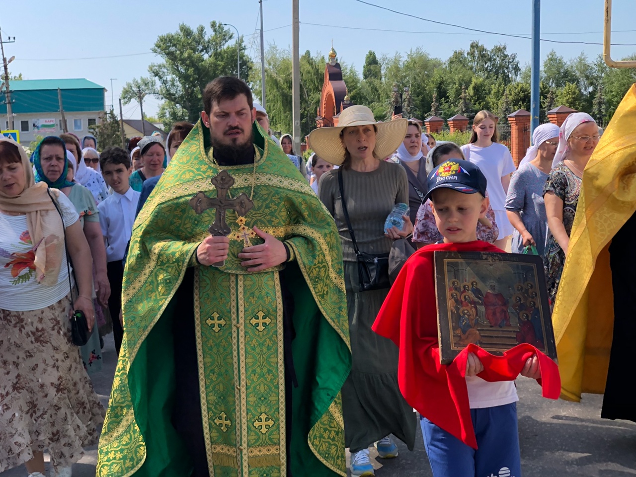 Жаркая погода и в этот день не стала помехой молящимся — десятки верующих разных возрастов под пение молитв шли свидетельствовать о своей вере. Многие присоединялись к молельному шествию непосредственно уже по пути крестного хода.