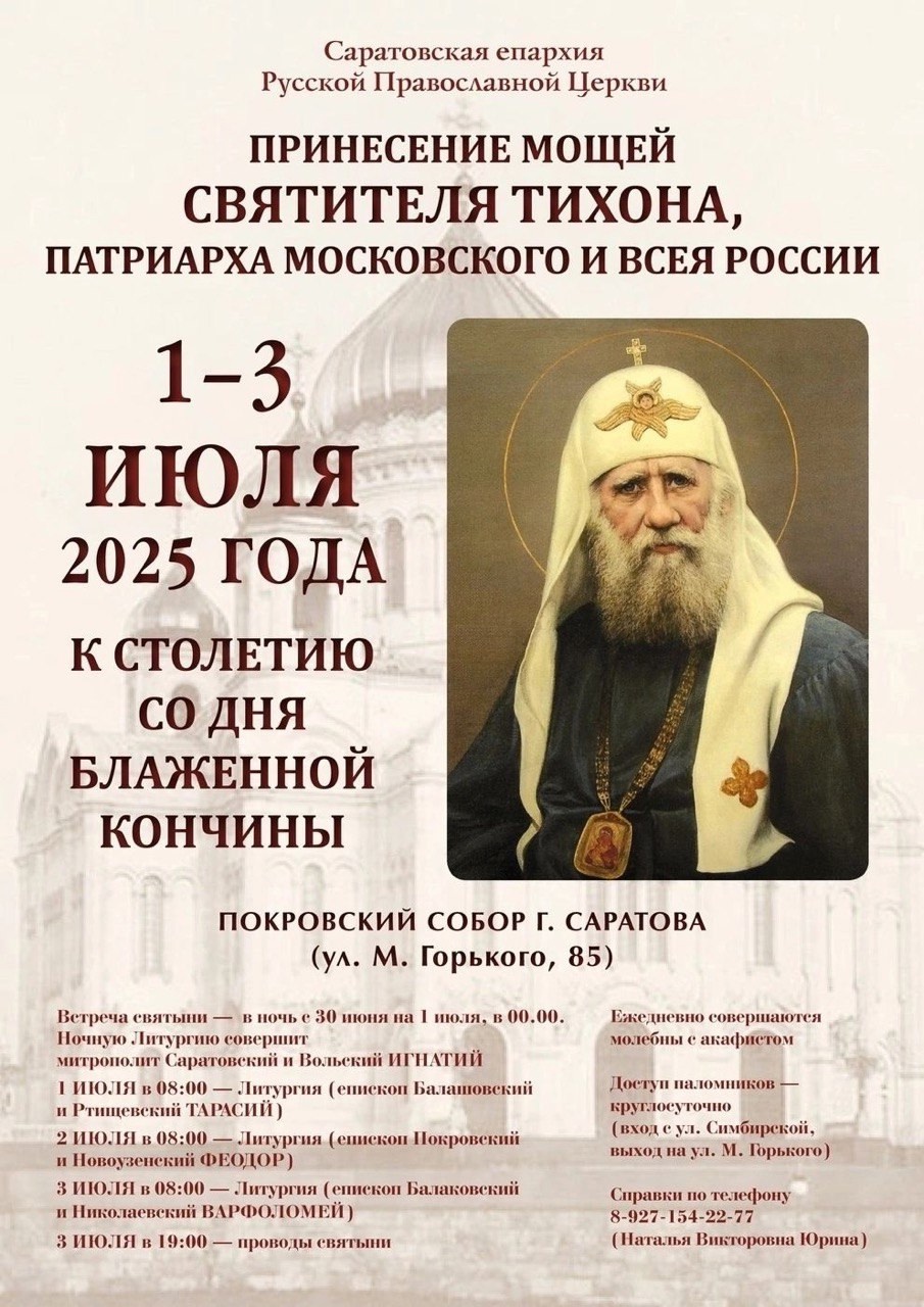 Духовенство и прихожане Хвалынского благочиния встретили мощи святителя Тихона, Патриарха Московского и всея России